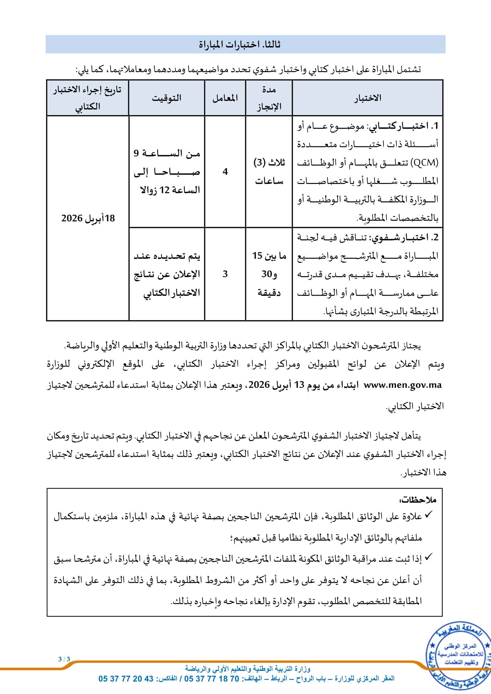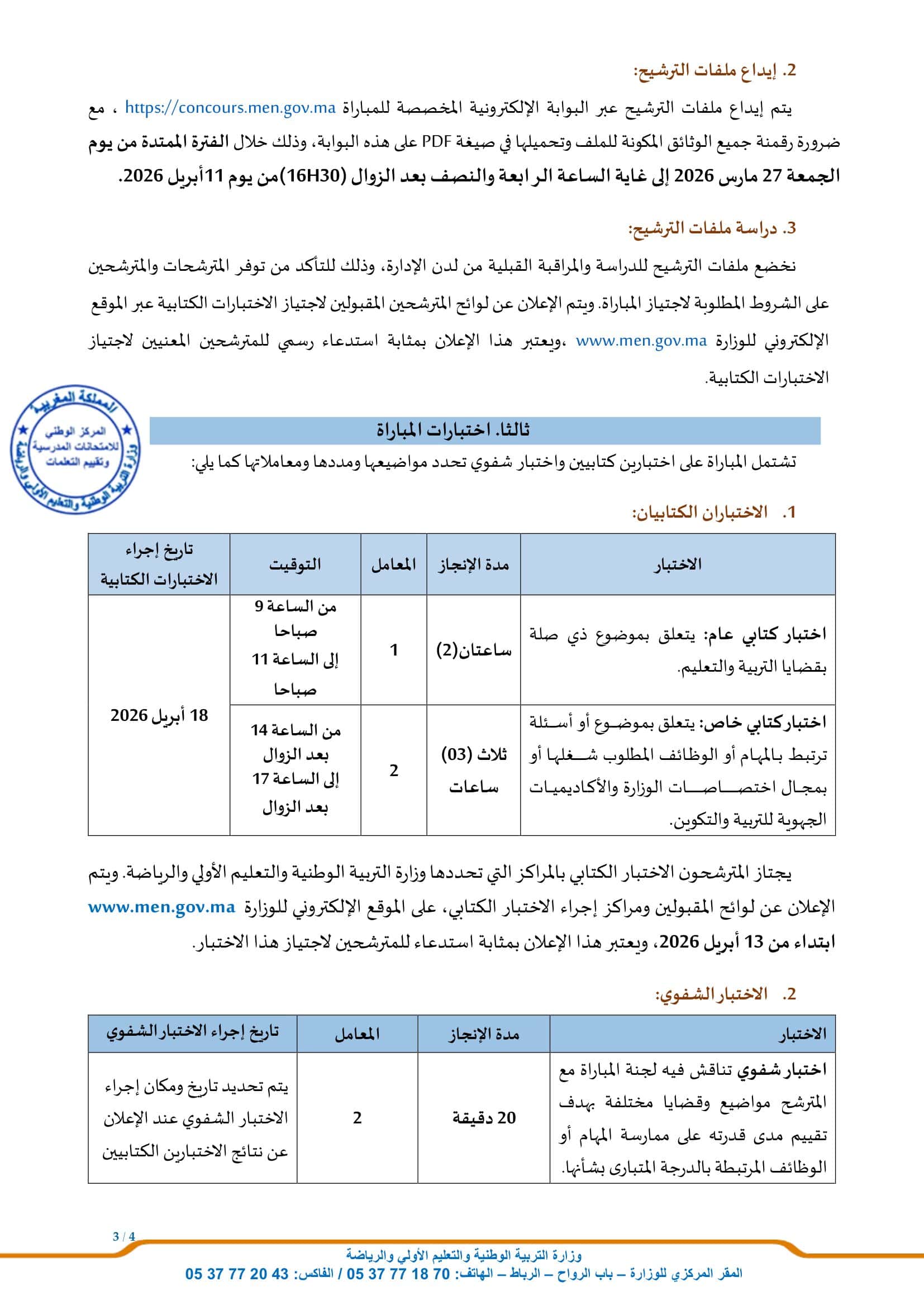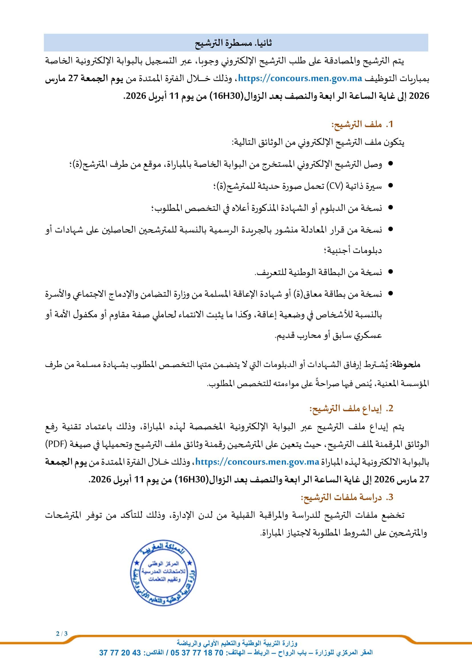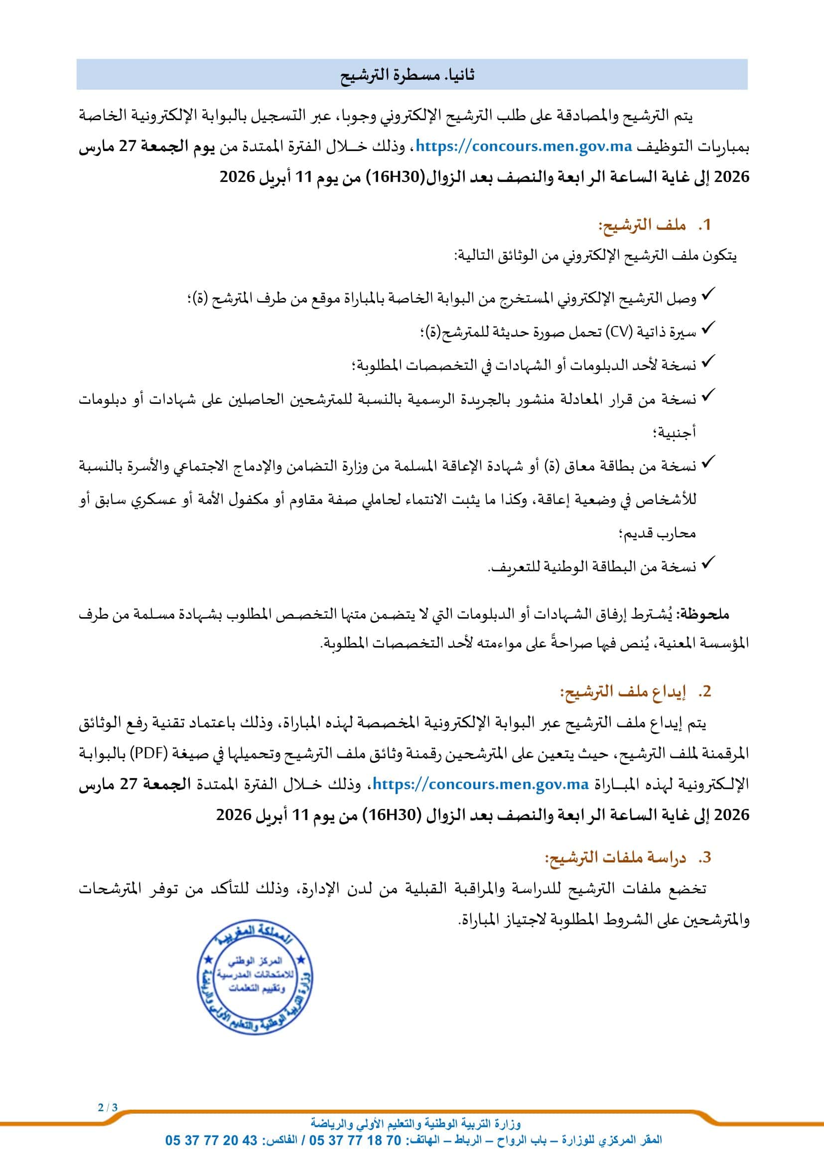 Mode de candidature: Postuler en ligne sur concours.men.gov.ma