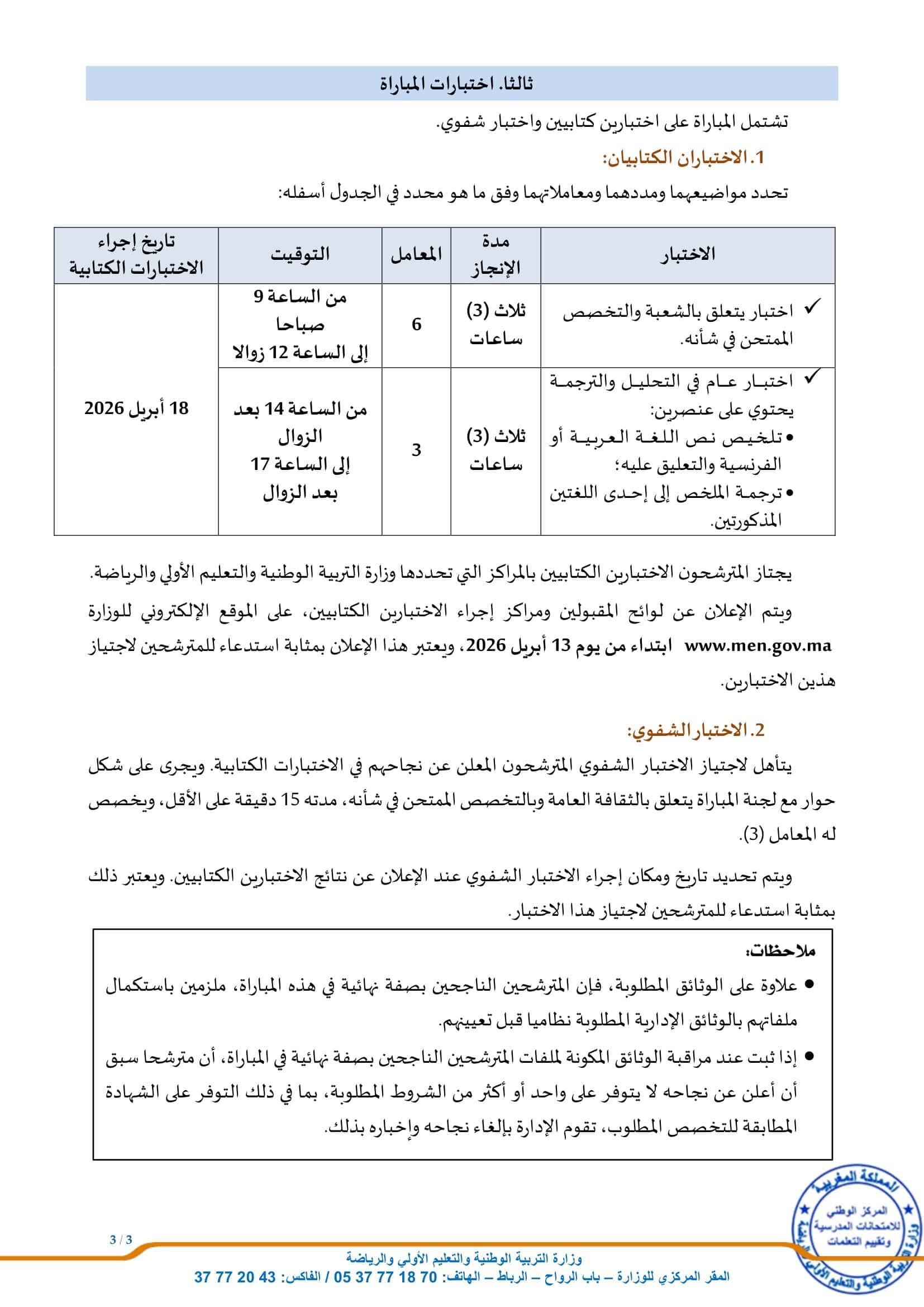 Date du concours: 18 avril 2026