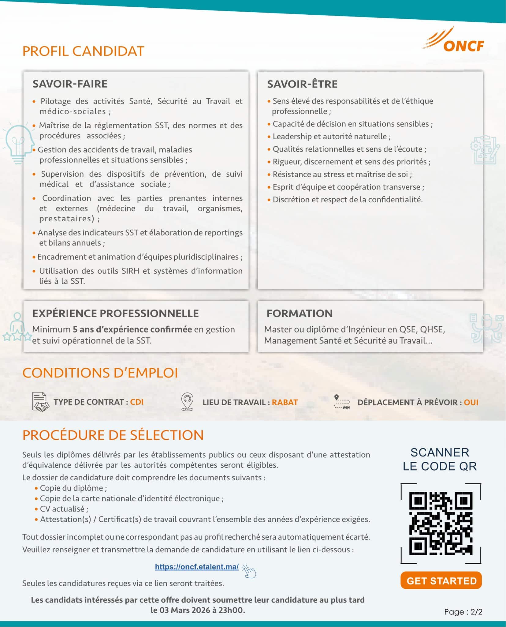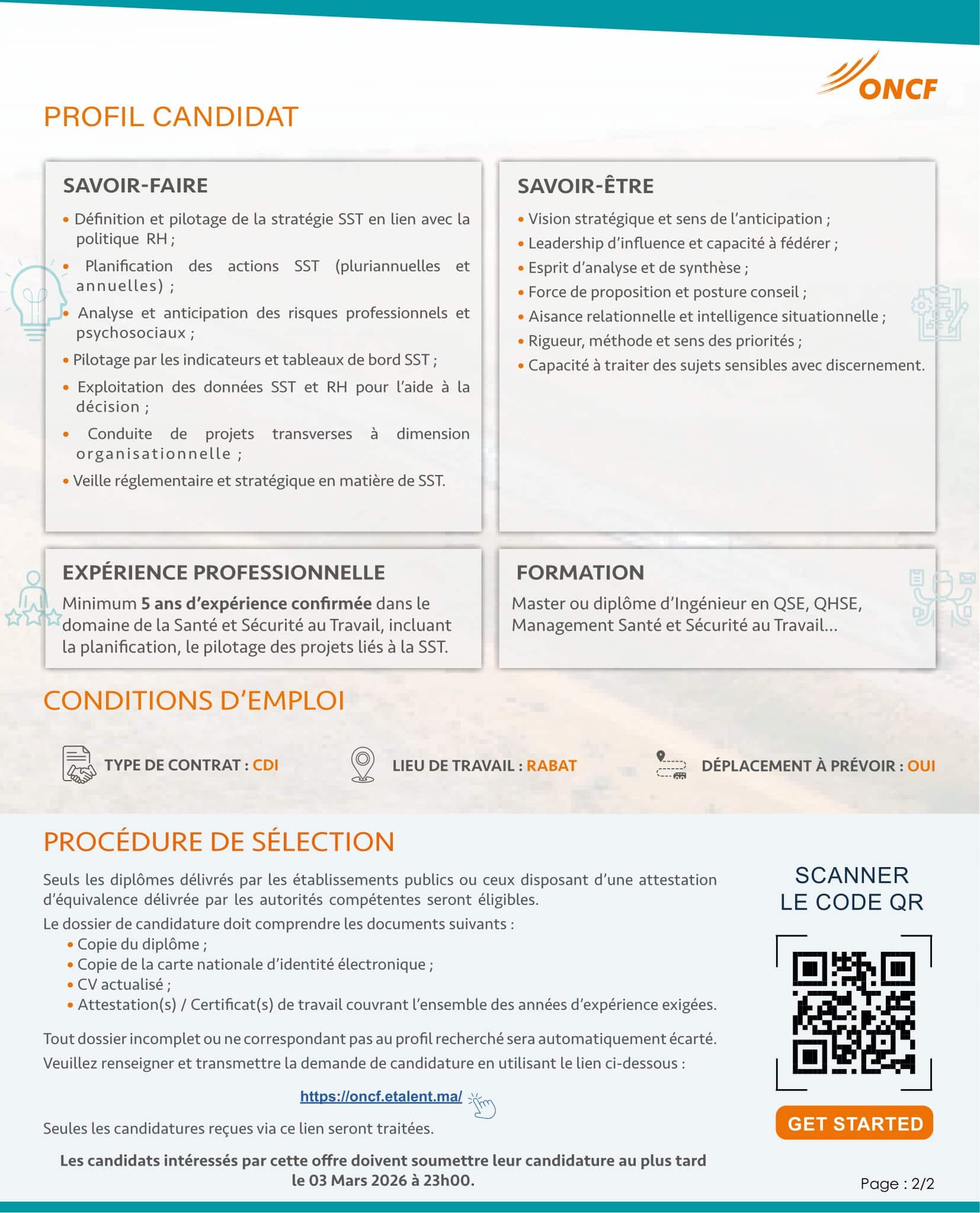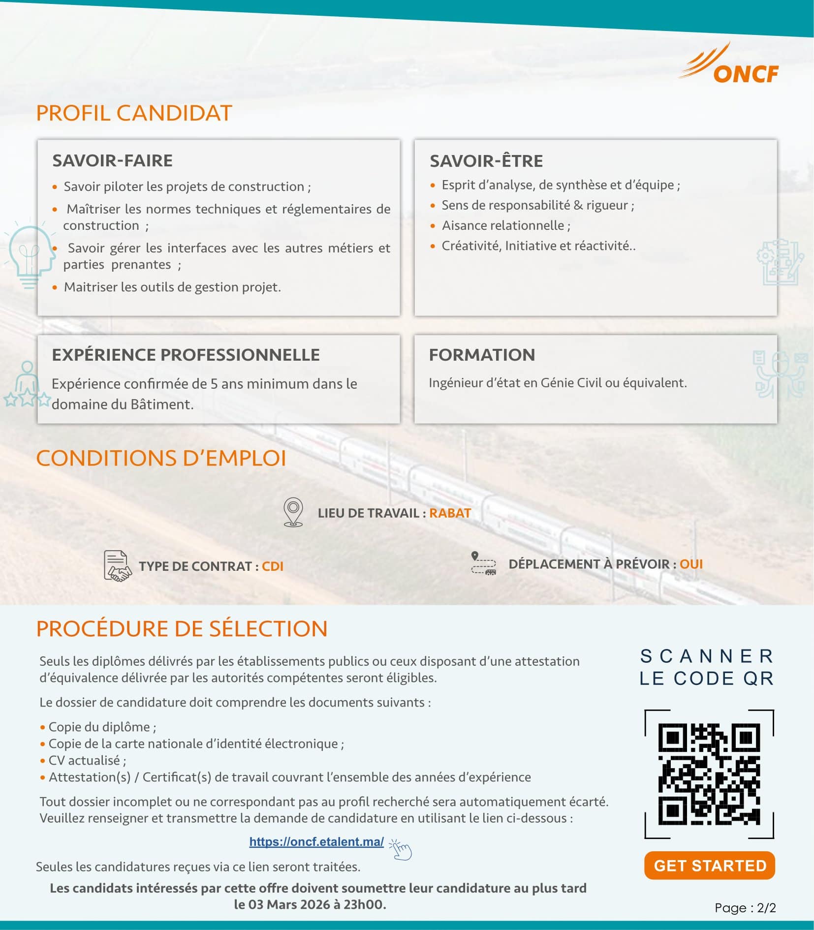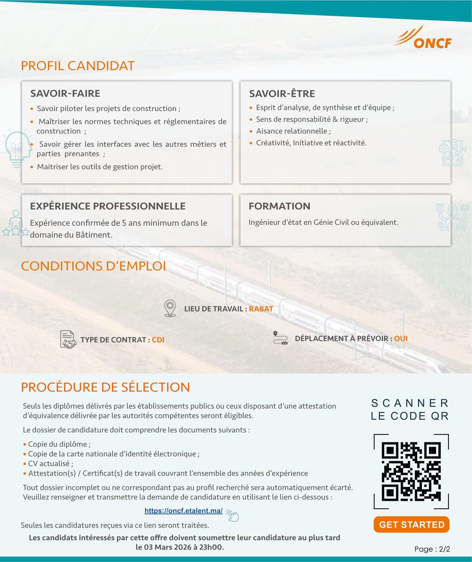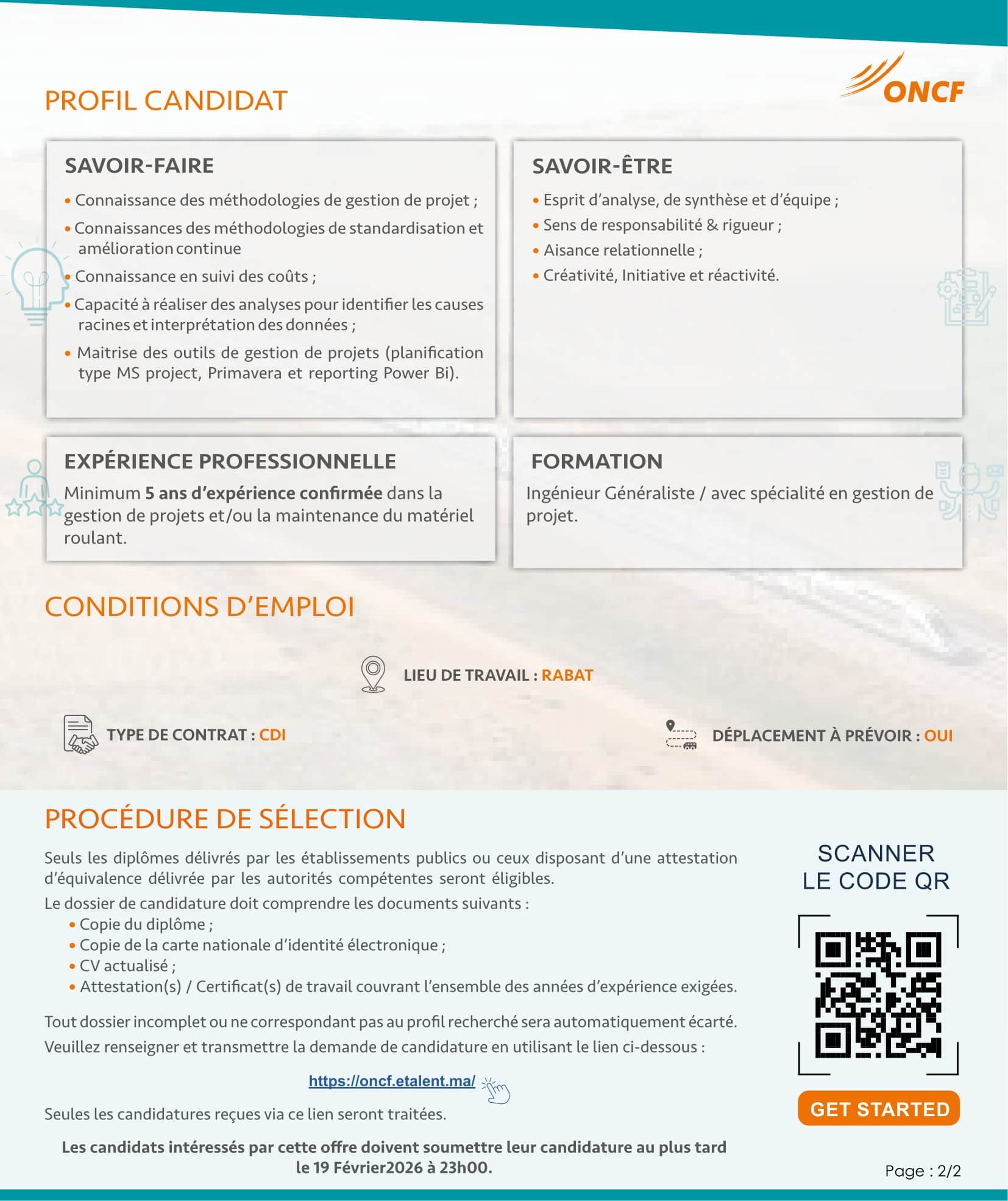 Concours de Recrutement ONCF 2026 (5 postes)