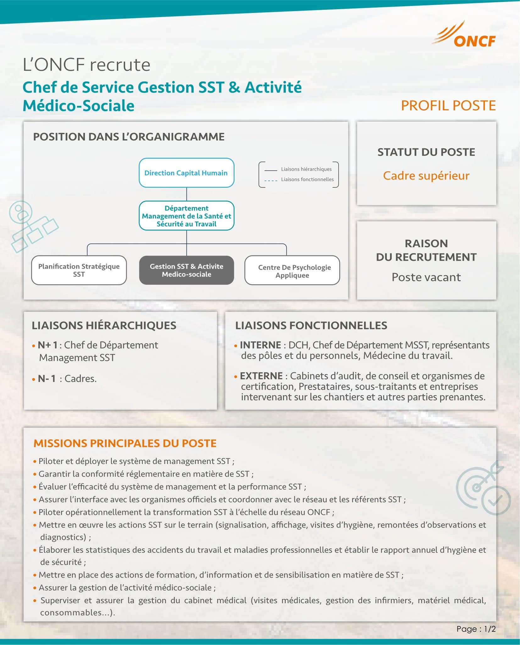 • Chef de Service Gestion SST et Activité Médico-Sociale