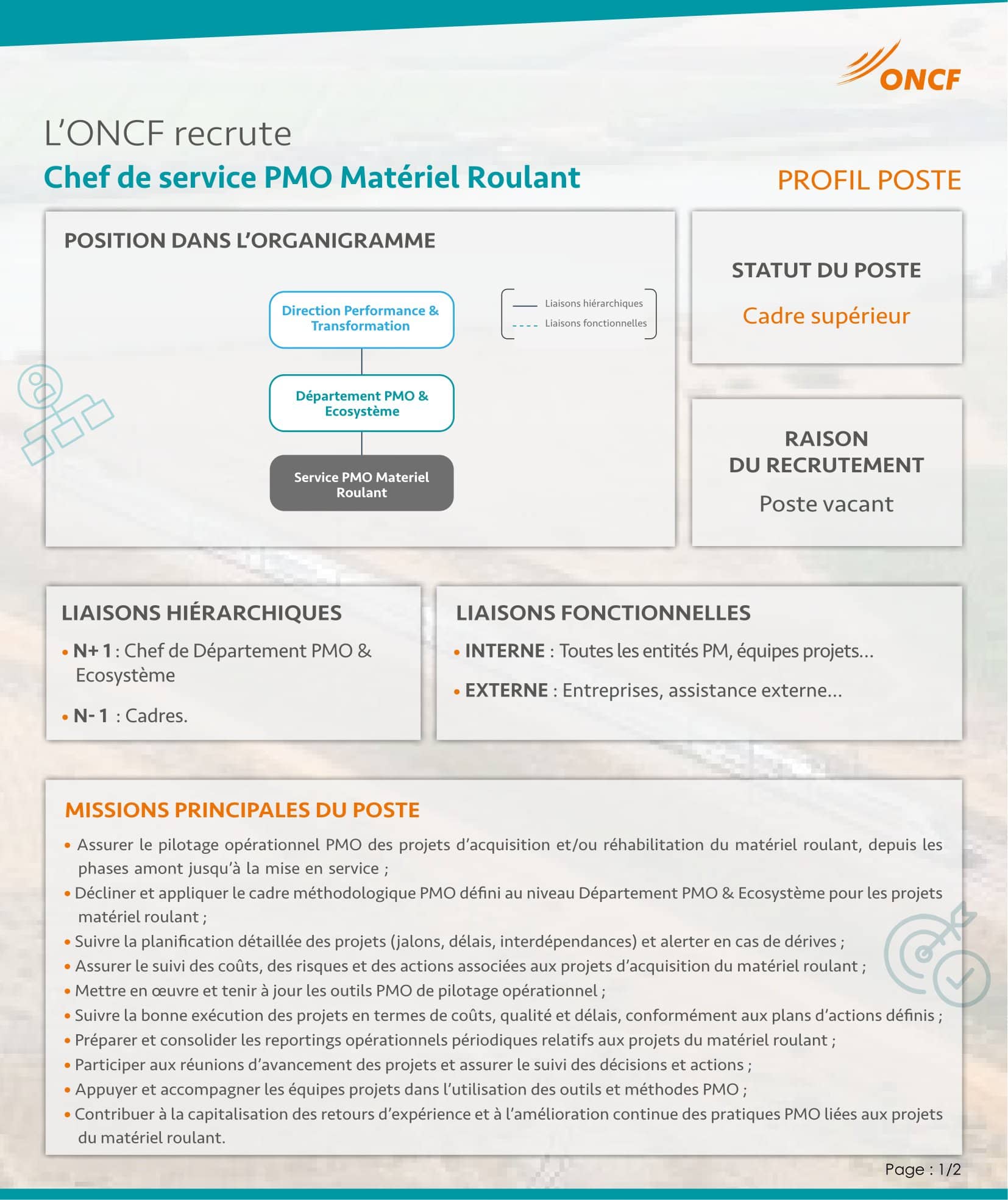 Avis de Concours Chef de Service PMO Matériel Roulant