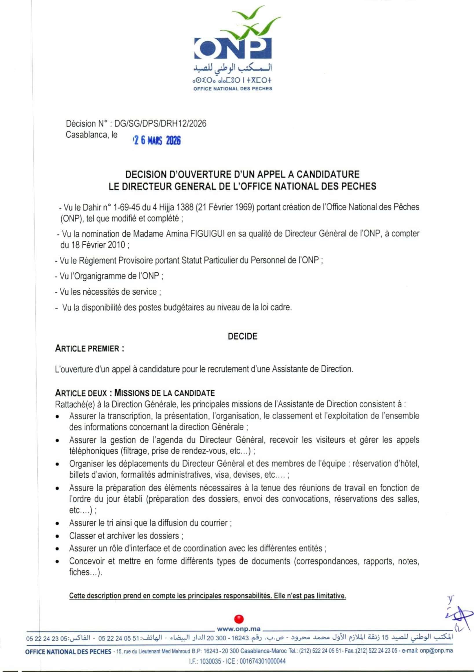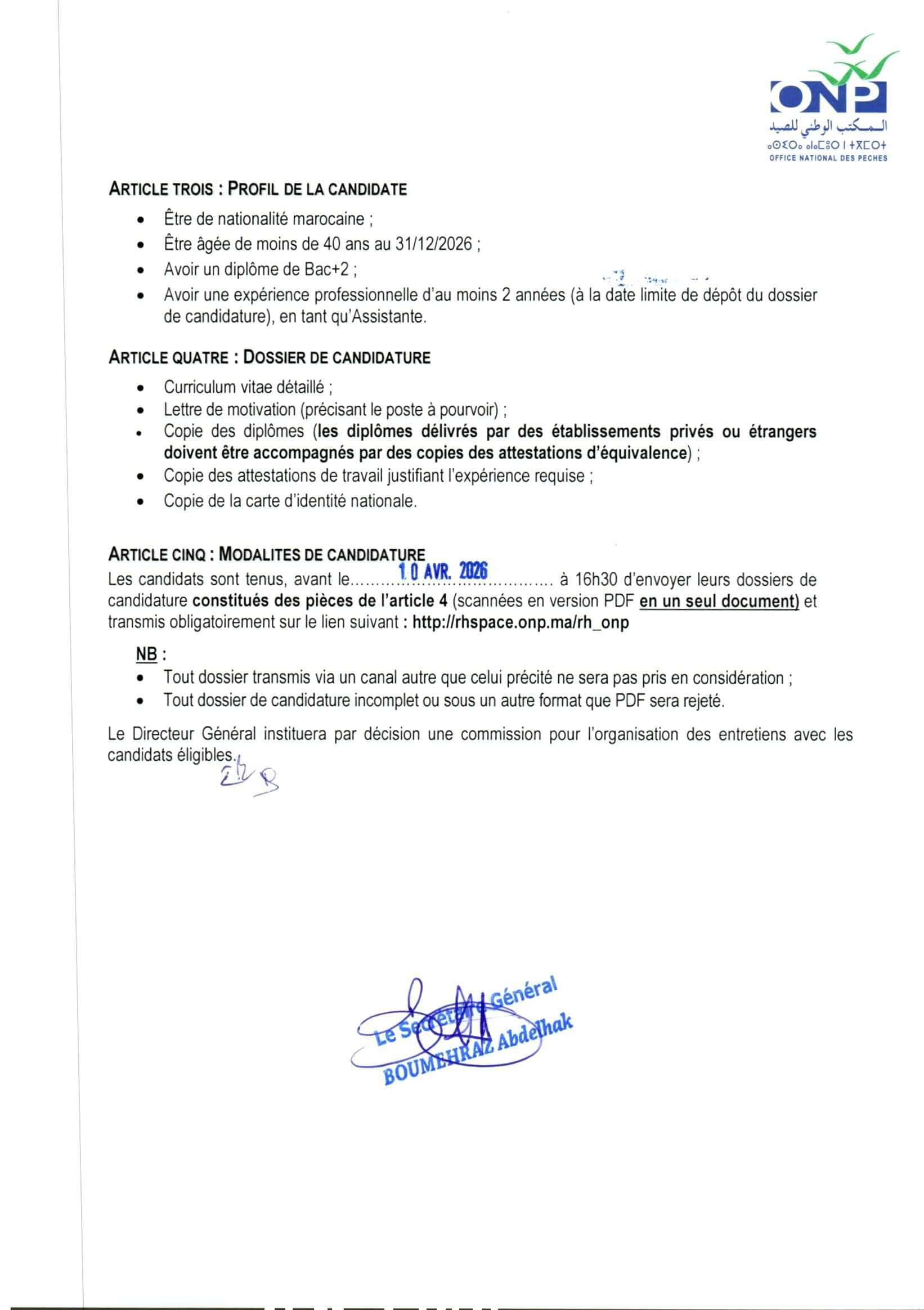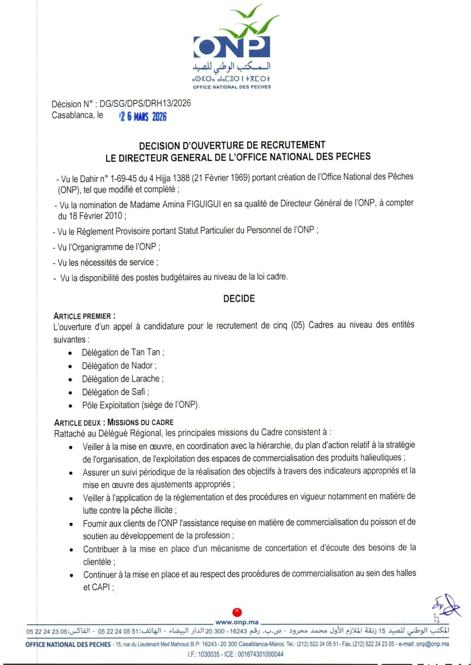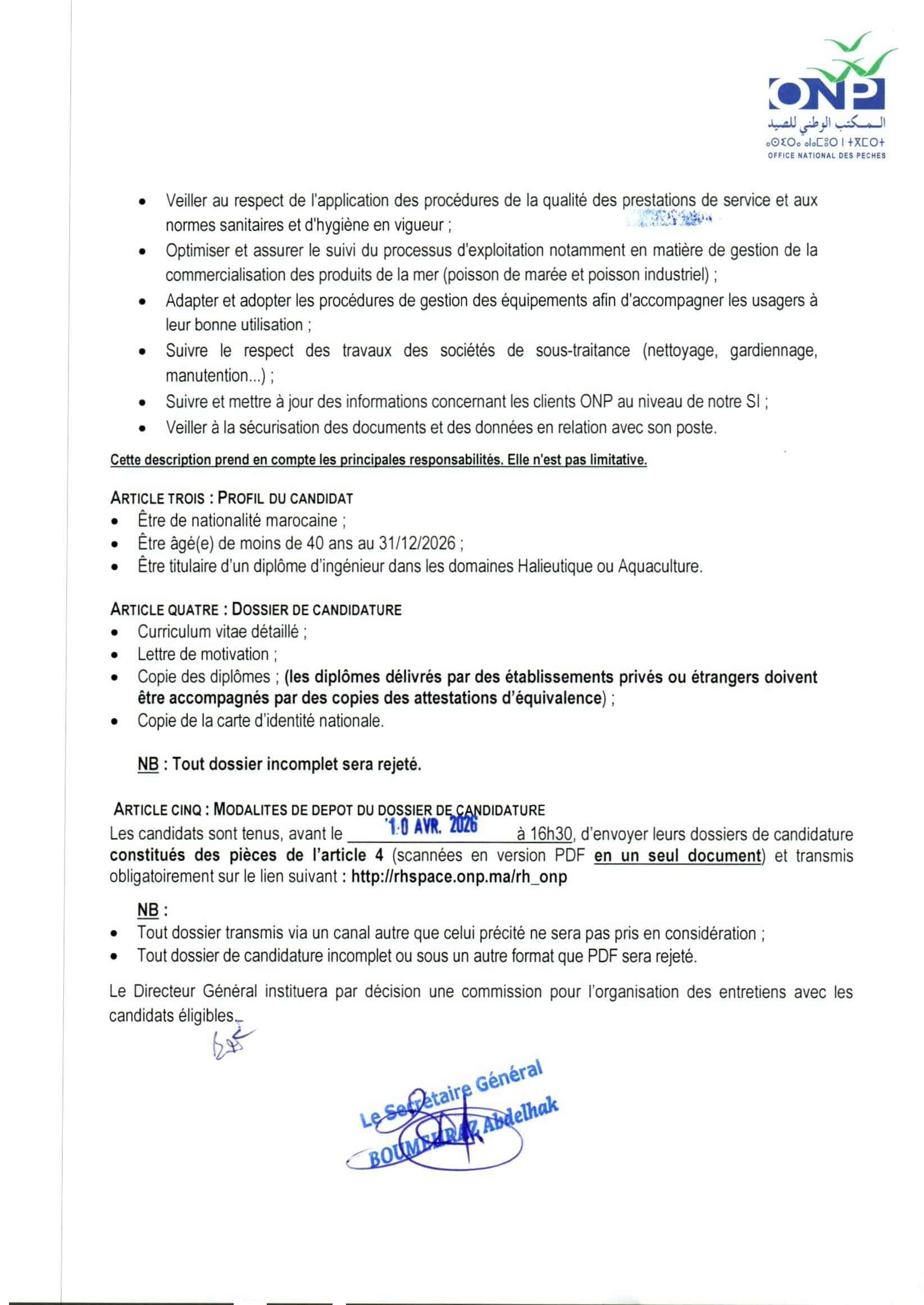 Concours de Recrutement Office National des Pêches ONP 2026 (6 Postes)