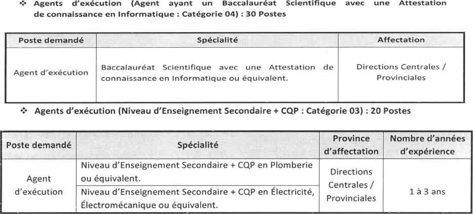 Documents requis: Demande d'emploi signée, CV avec photo, copies d'identité et diplômes, attestations d'expérience