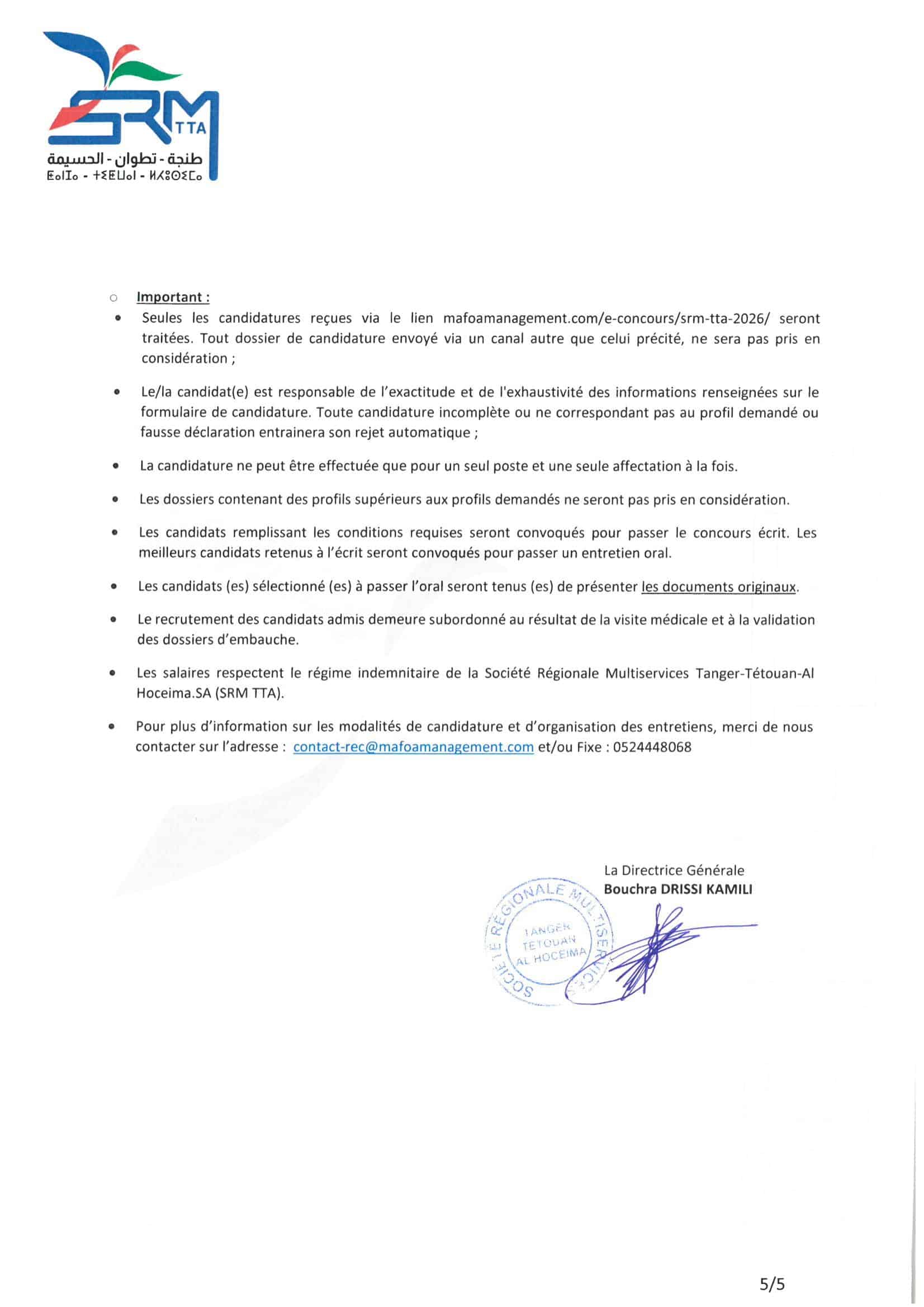 Mode de candidature: En ligne via mafoamanagement.com/e-concours/srm-tta-2026/
