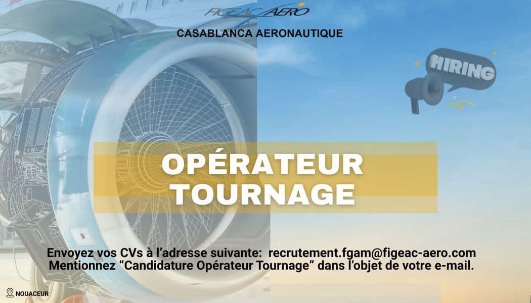Figeac Aéro Maroc recherche des Opérateurs Tournage en CDI pour son site de Nouaceur. Les postes s'adressent à des techniciens titulaires d'un Bac+2 en mécanique ou usinage souhaitant évoluer dans l'industrie aéronautique de haute précision.