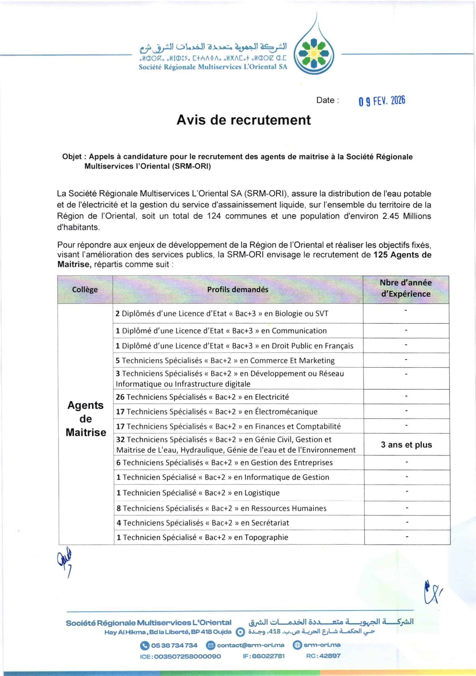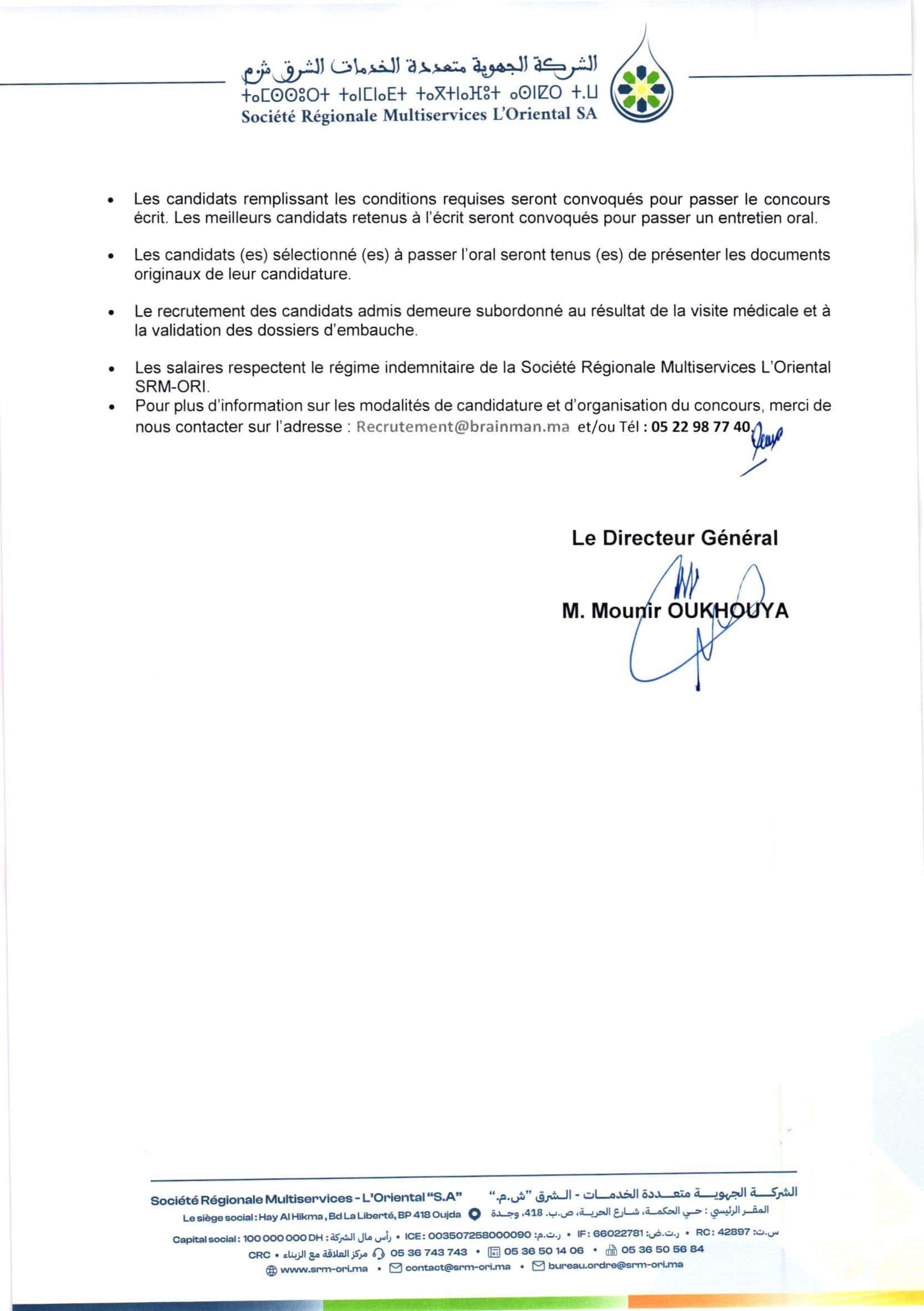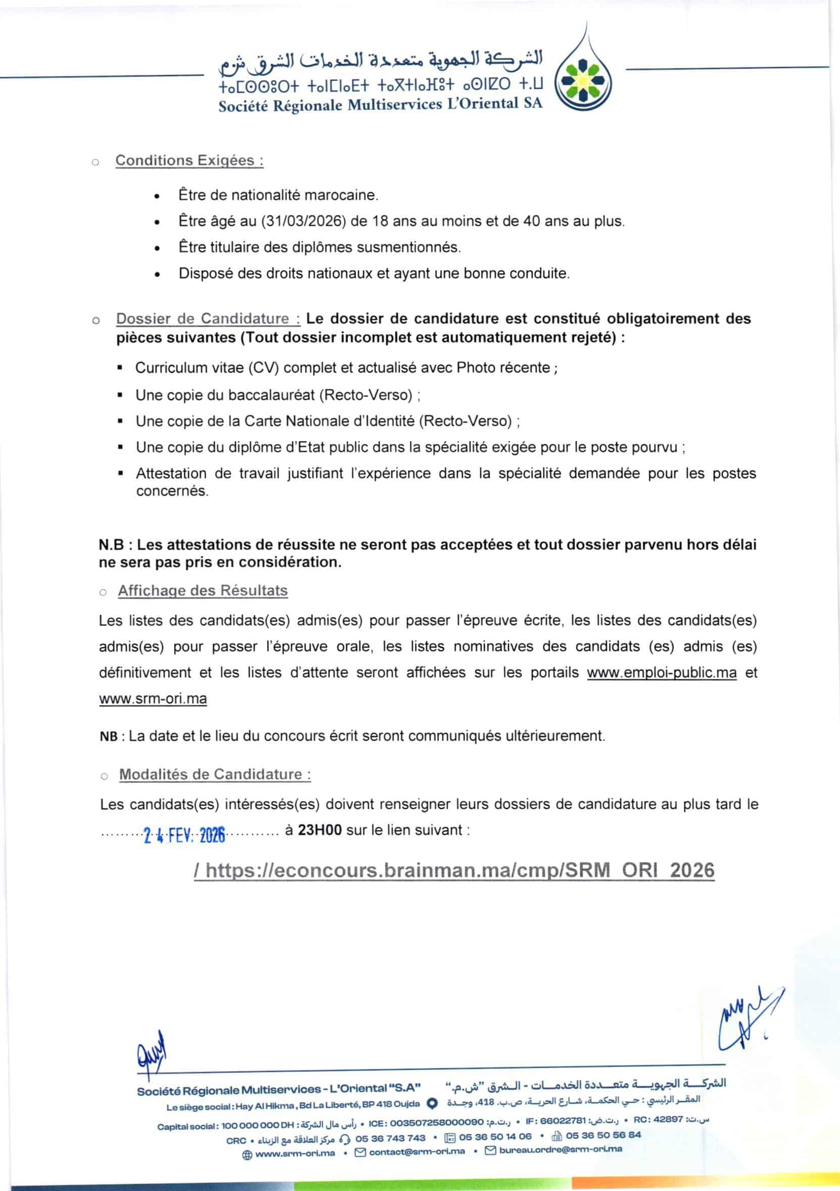 Mode de candidature: https://econcours.brainman.ma/cmp/SRM_ORI_2026