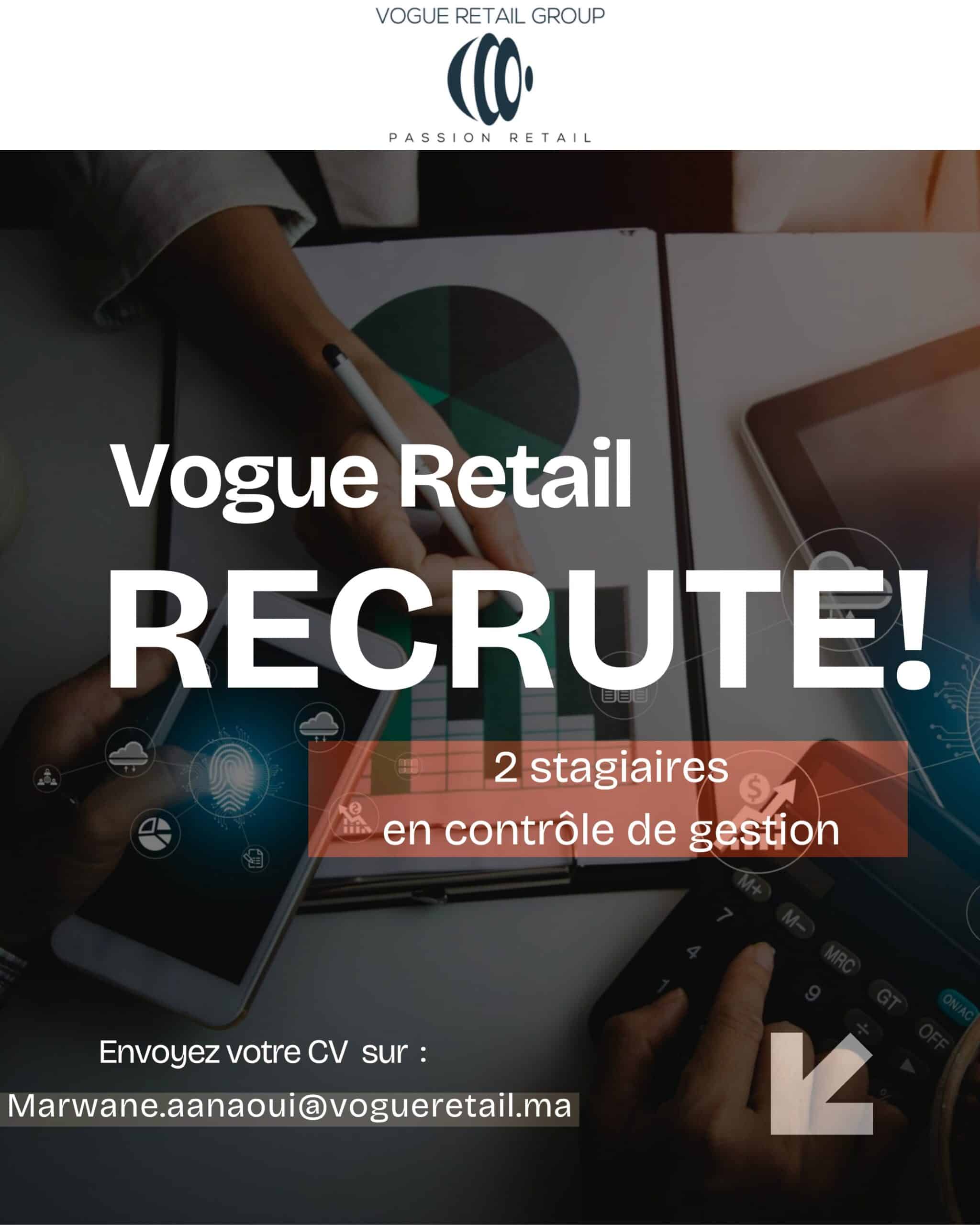 Envoyez votre CV à l'adresse Marwane.aanaoui@vogueretail.ma.