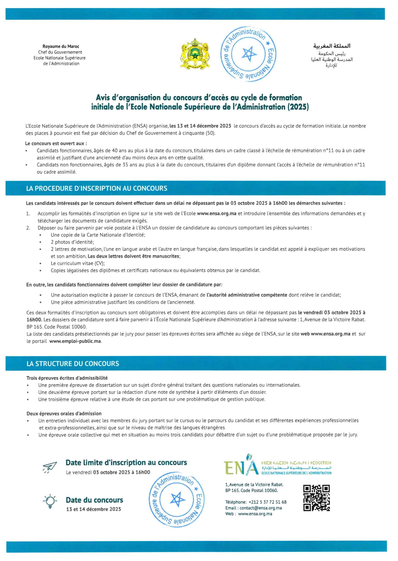 Résultats Définitifs Concours de Recrutement ENSA Administration 2025 (50 Postes)