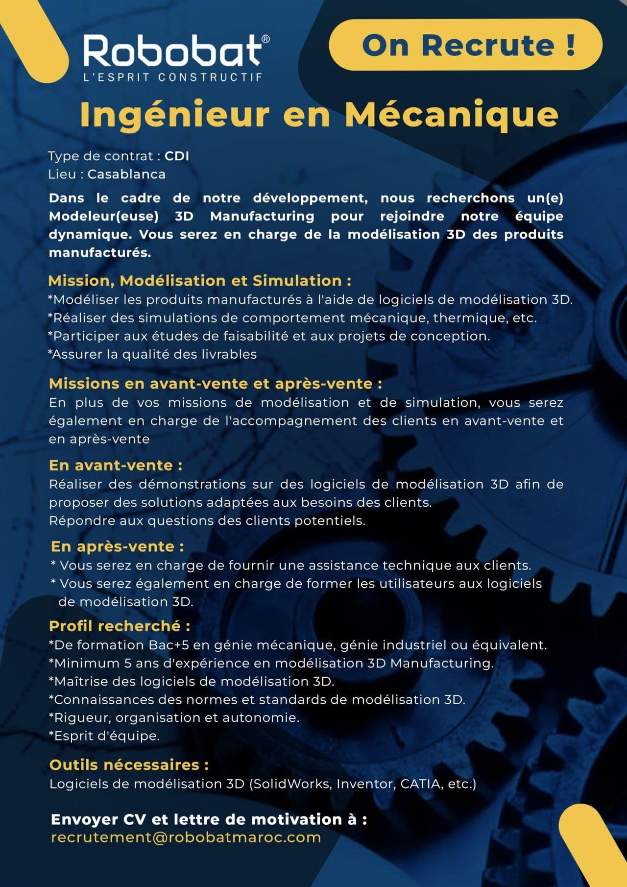 Recrutement immédiat chez Robobat Maroc pour ingénieurs confirmés